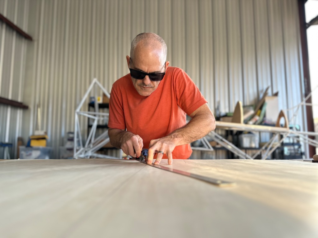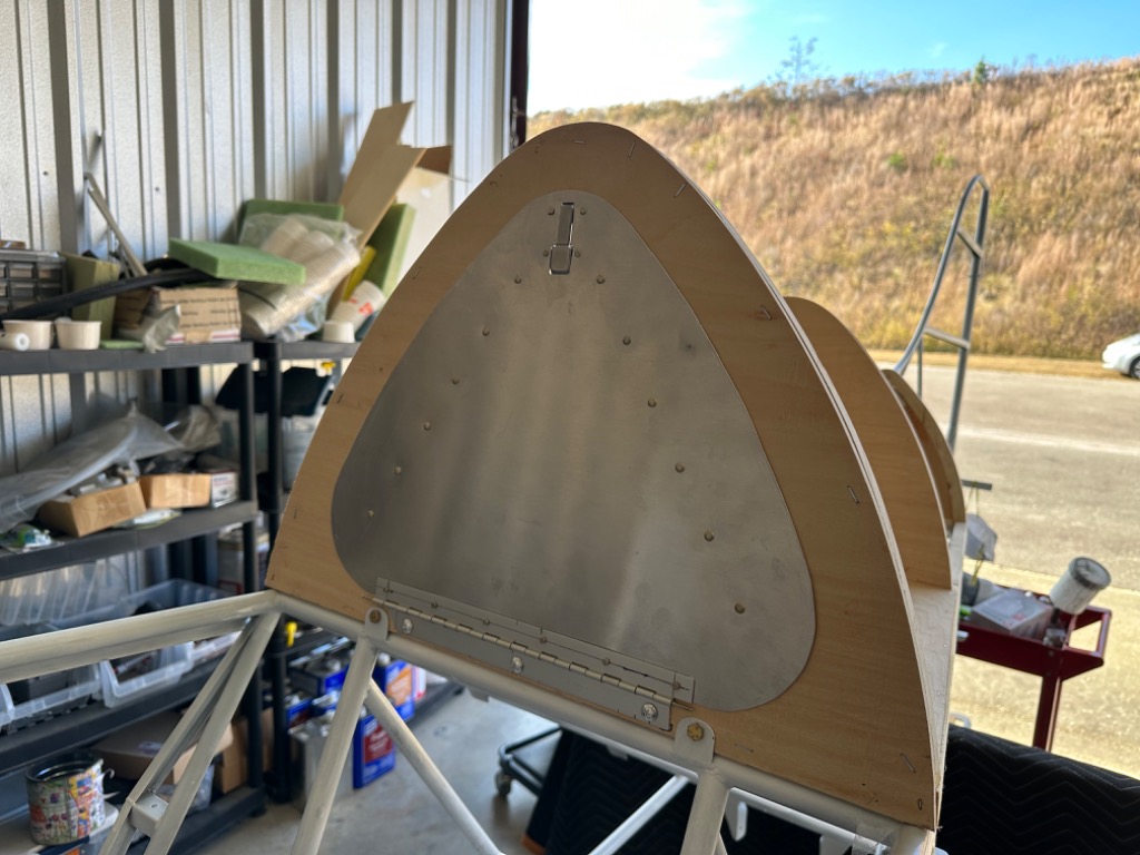 Completed assembling the baggage door, including the latch, stiffeners and hinge. Started work on the turtle deck skin. Todd Gould came out today and gave me a hand