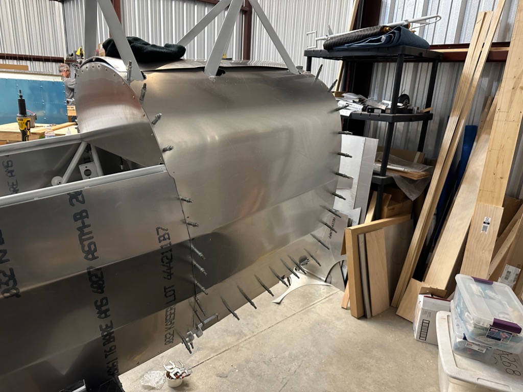 Drilled right forward panel to fuselage.Drilled forward center panel. Began preparing nutplate holes