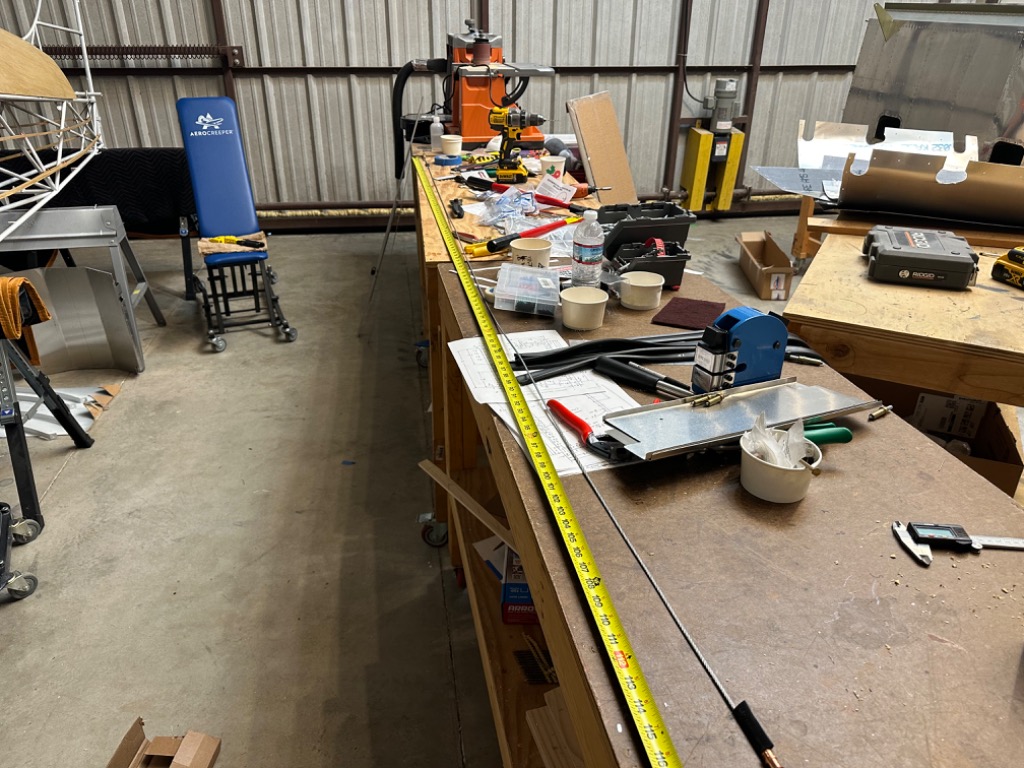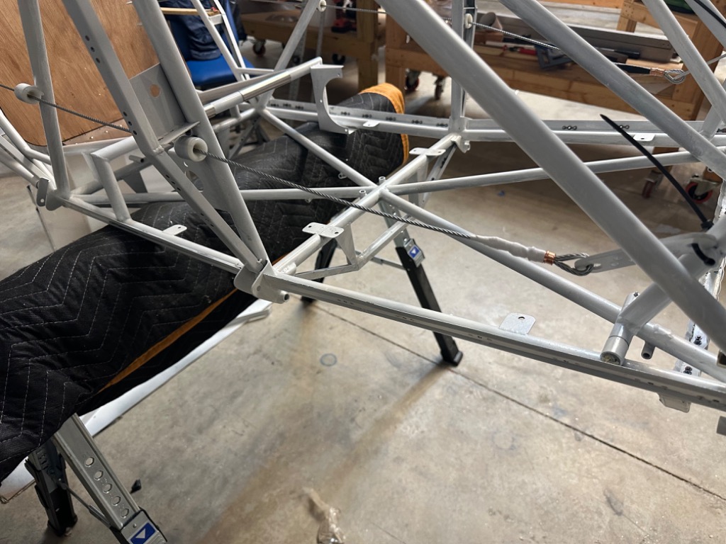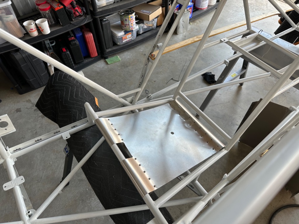 Riveted seat pan. Removed fuel tank and painted tank straps. Fabricated rudder cables