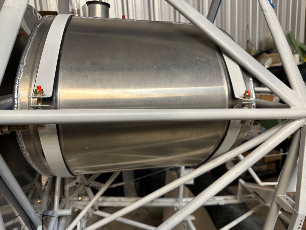 Spent hours trying washer combinations that would prevent the tank straps from making contact with the fuselage structure